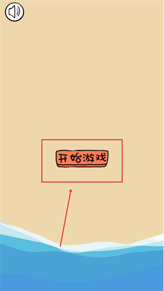 1、點(diǎn)擊位于中央的紅框按鈕【開始游戲】即可開始冒險(xiǎn),左上角的【喇叭圖標(biāo)】用于控制音量。