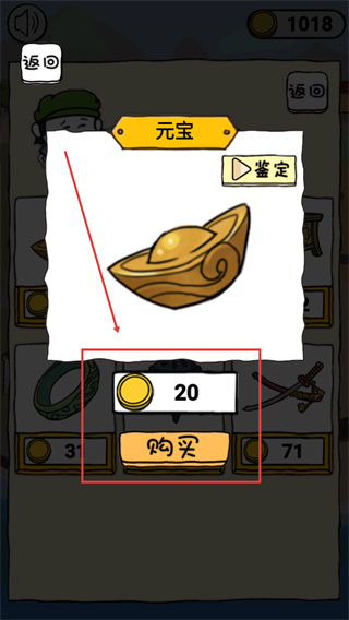 2、購買元寶后,點(diǎn)擊【鑒定】按鈕可查看其信息。