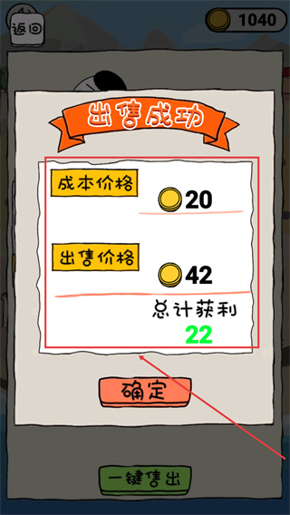3、在物品出售界面,系統(tǒng)會(huì)明確顯示【成本價(jià)格】為【20】,【出售價(jià)格】為【42】,【總計(jì)獲利】為【22】。