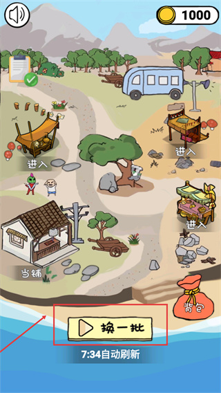 4、在卡通風(fēng)格的主城地圖中探索,可點(diǎn)擊道路兩旁的木棚和攤位上的【進(jìn)入】標(biāo)識(shí)與NPC互動(dòng)。