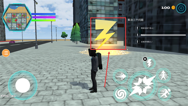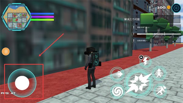 2、利用左側【移動輪盤】控制角色走位,同時完成“解決三個問題”的主線目標,推進流程。