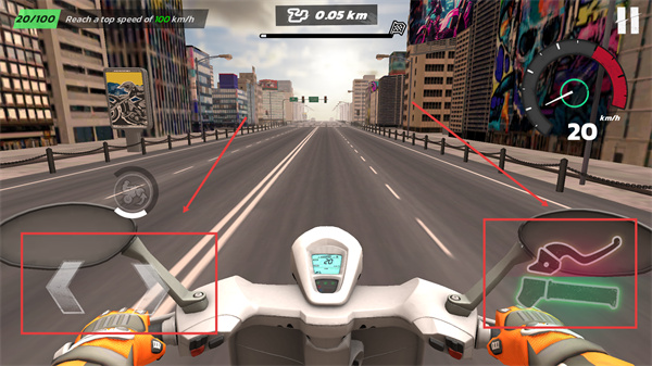 3、配備重力感應(yīng)和左右鍵位雙操作模式,搭配減速、加速、喇叭、翹頭等便捷操作,操控流暢且易上手。