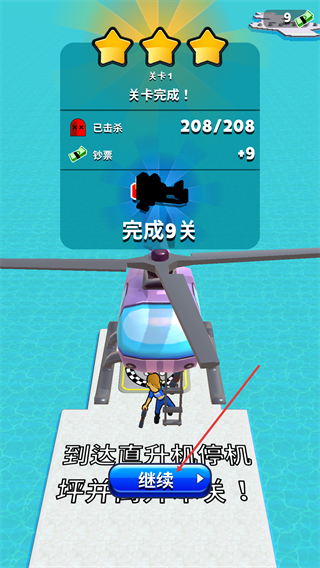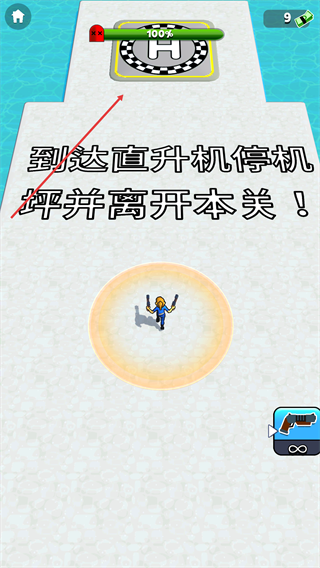 3、移動到直升機(jī)停機(jī)坪的位置,完成關(guān)卡。