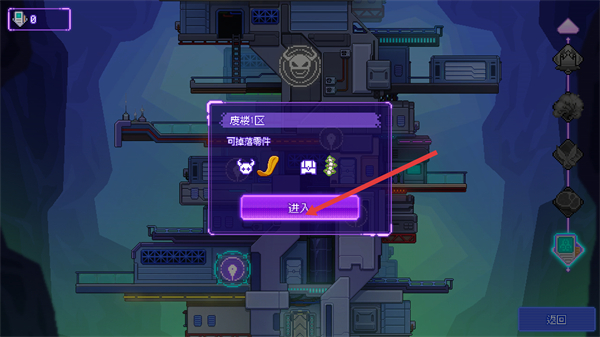 2、選擇【廢樓1區(qū)】并點擊【進入】,該區(qū)域可掉落零件,助力后續(xù)器官收集與組合。