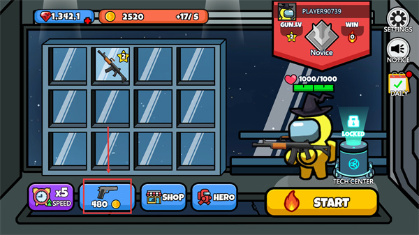 1、可消耗480貨幣解鎖武器,利用【SPEED】加速資源獲取。