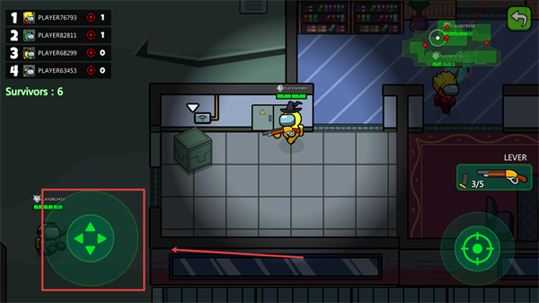 3、進(jìn)入對局后,用移動按鈕操控角色移動,收集場景中的【LEVER】道具。