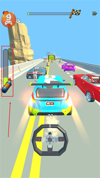 3、行駛過程中可使用左側(cè)道具,借助加速類道具超越對(duì)手,沿賽道黃線行駛能保持穩(wěn)定速度。