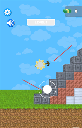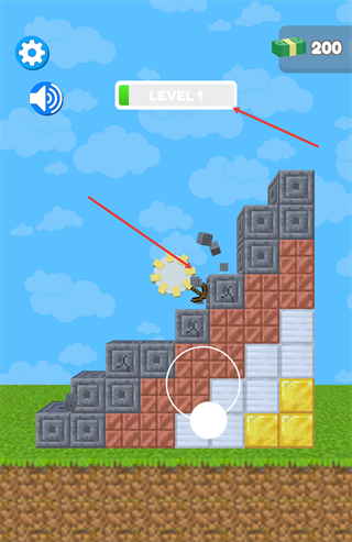 2、通過遙感控制【鎬子】移動(dòng)至對(duì)應(yīng)位置,對(duì)方塊實(shí)施破壞操作。
