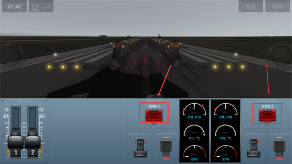 2、當出現(xiàn)【ENG1-FIRE】與【ENG2-FIRE】故障提示時,需立即按下對應(yīng)發(fā)動機火警按鈕,觸發(fā)滅火程序控制故障風(fēng)險。