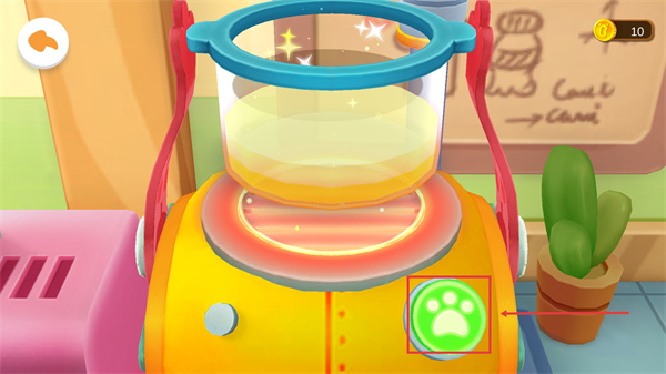 2、原料投放后,點(diǎn)擊【綠色爪印按鈕】啟動(dòng)加熱工序,待容器內(nèi)食材完成烹飪狀態(tài)變化后進(jìn)入下一步。