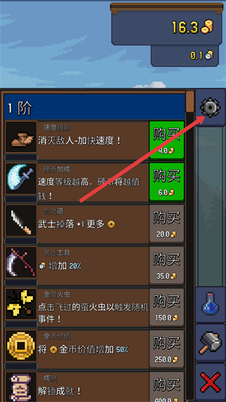 1、進入游戲主界面,點擊右下角綠色向上箭頭按鈕。