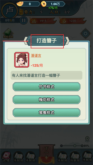3、融入時代更迭元素,玩家需帶領(lǐng)家族順應(yīng)歷史洪流不斷向前,在不同歷史階段調(diào)整發(fā)展策略應(yīng)對時代變化。