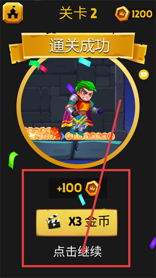 3、觀察金幣下落軌跡,確保英雄處于合適位置,順利接住所有掉落的金幣和寶石。