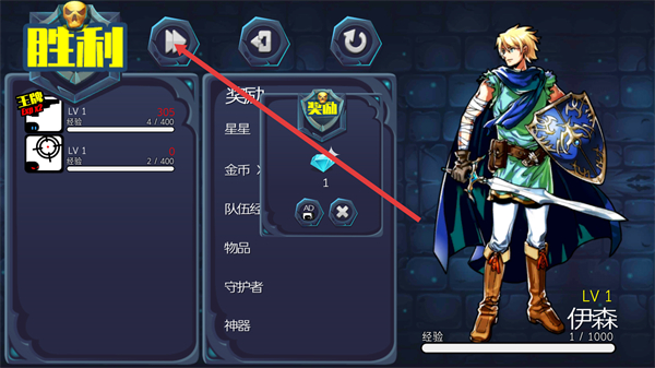 4、戰(zhàn)斗勝利后領(lǐng)取經(jīng)驗與金幣獎勵,點擊繼續(xù)按鈕進(jìn)入下一關(guān),提升史萊姆等級準(zhǔn)備后續(xù)挑戰(zhàn)。