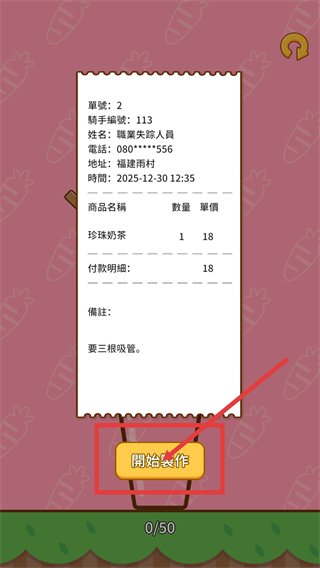 1、查看【珍珠奶茶】訂單詳情,確認(rèn)備注【三根吸管】后,點擊【開始制作】按鈕啟動制作流程。