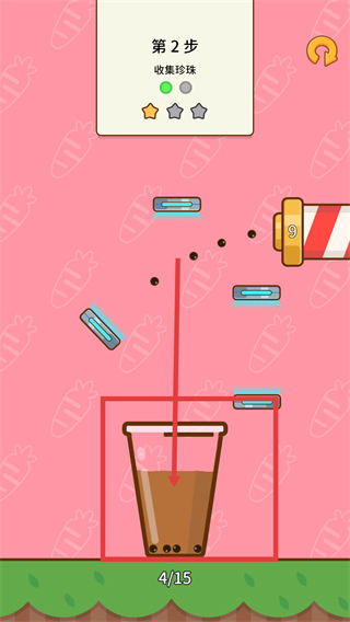 3、完成奶茶收集后,進(jìn)入收集【珍珠】步驟,讓珍珠落入【奶茶杯】,填滿【進(jìn)度條】的要求。