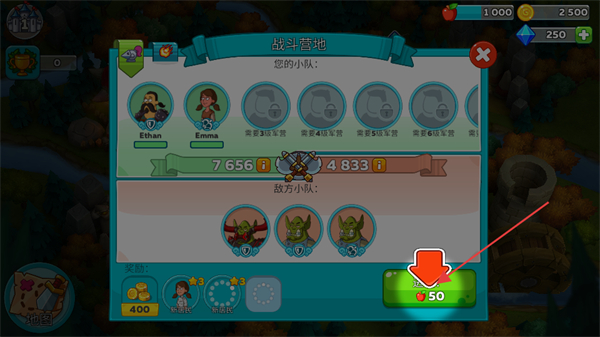 3、在區(qū)域場景中找到戰(zhàn)斗營地的位置,點擊進入戰(zhàn)斗營地的準備界面,準備開啟關卡對戰(zhàn)。