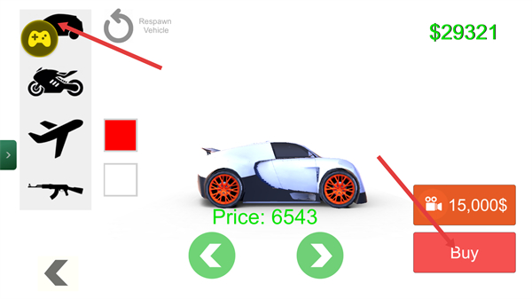 1、在載具選擇界面,查看汽車的價(jià)格,確認(rèn)購(gòu)買后點(diǎn)擊按鈕完成購(gòu)買,可提升都市探索的移動(dòng)效率。