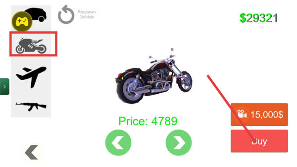 2、切換到摩托車選項(xiàng),查看其價(jià)格,點(diǎn)擊按鈕獲取,它比汽車更靈活,適合狹窄路段行駛。