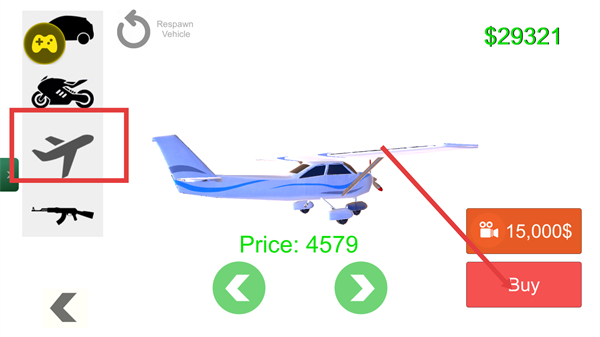 3、選擇飛機(jī)載具,查看價(jià)格后點(diǎn)擊按鈕購(gòu)買,利用飛機(jī)可快速跨越長(zhǎng)距離區(qū)域,提升探索范圍。