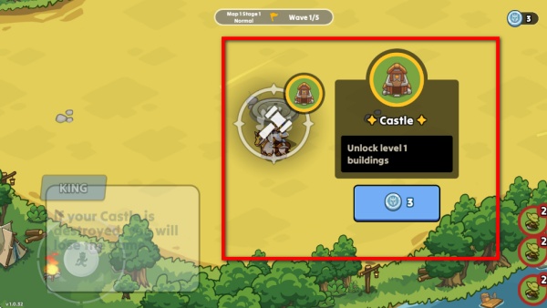 1、進(jìn)入游戲后消耗資源解鎖建筑,比如解鎖城堡可開啟關(guān)卡1的建筑權(quán)限,合理用資源解鎖建筑,為后續(xù)防御和攻擊儲備基礎(chǔ)能力。