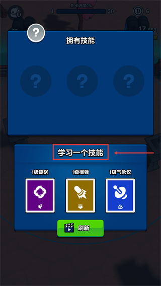 3、解鎖【學(xué)習(xí)一個(gè)技能】選項(xiàng)后,優(yōu)先選擇【1級(jí)榴彈】類輸出技能,能提升對(duì)【敵方單位】的傷害效率。