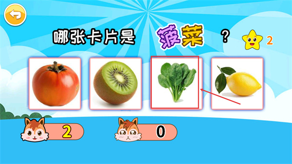 4、選中被框選的【菠菜卡片】完成識別,星星進(jìn)度達(dá)【2】可解鎖后續(xù)挑戰(zhàn)。