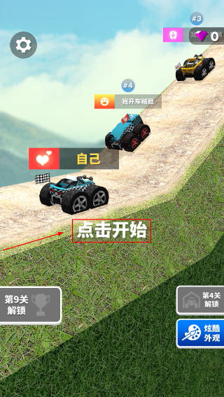1、在關(guān)卡選擇界面點擊【點擊開始】,進(jìn)入對應(yīng)賽車關(guān)卡。