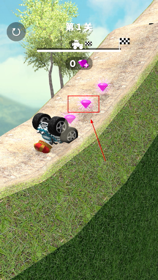 2、操控賽車收集沿途的【紫色鉆石】資源,同時保持車輛穩(wěn)定行駛。