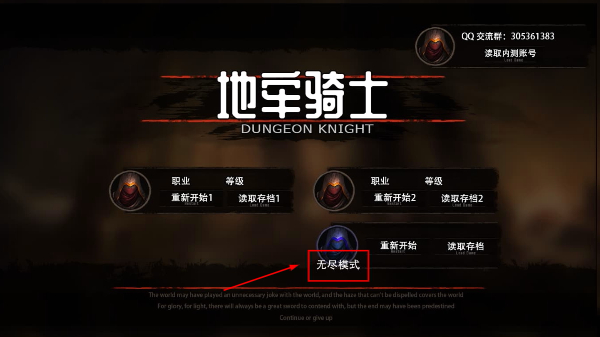 1、進(jìn)入【地牢騎士】選擇【無(wú)盡模式】,選定【游俠】職業(yè)開(kāi)啟冒險(xiǎn),可重新開(kāi)始或讀取存檔推進(jìn)游戲進(jìn)程。