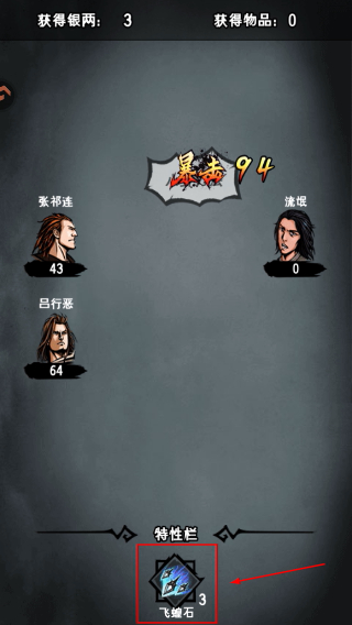 3、戰(zhàn)斗中觸發(fā)暴擊可造成高額傷害,合理利用特性欄的【飛燕石】道具,能有效增強(qiáng)輸出,助力快速擊敗對(duì)手。