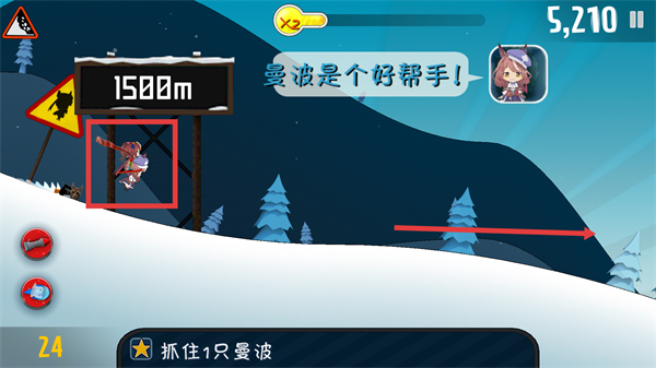1、啟動(dòng)逃亡后,規(guī)劃滑行路線避開障礙,借地形施展特技積累分?jǐn)?shù),逐步適應(yīng)雪坡上的速度變化。