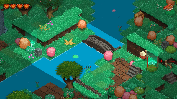 3、在森林小溪邊找到發(fā)光的出口方塊,通過石橋前往新區(qū)域,繼續(xù)解開沿途謎題。