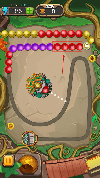 2、點(diǎn)擊石蛙背后彩球切換目標(biāo),瞄準(zhǔn)剩余珠子消除,持續(xù)獲取【金幣】提升得分。