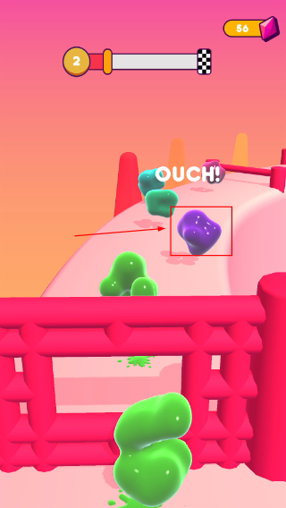 1、控制果凍人躲避敵人攻擊,收集增益道具提升戰(zhàn)斗力,穩(wěn)步推進(jìn)靠近終點(diǎn)。