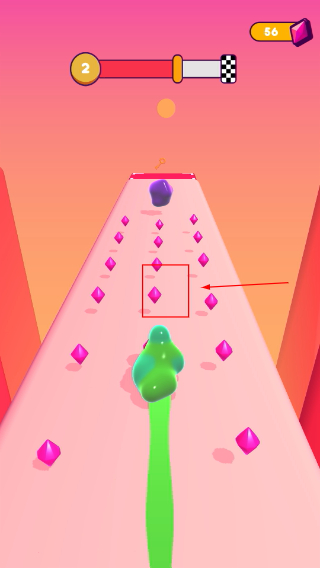 2、滑動(dòng)操作收集【粉色菱形】與【紫色果凍】,積累資源用于后續(xù)合成強(qiáng)力武器增強(qiáng)實(shí)力。